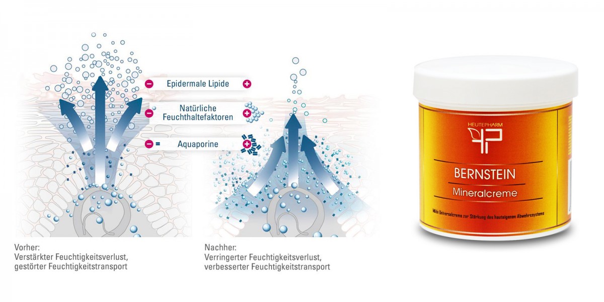 The amber cream is a natural regeneration aid for the skin because amber balances the PH level, protects the skin from environmental toxins, binds dirt and toxins and pulls them out of the pores.
